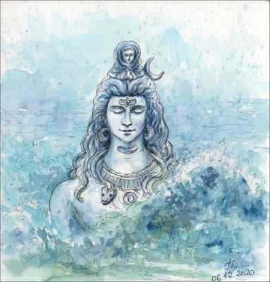 Нарисовала статую Шивы из Ришикеша во время наводнения Ганги в 2013-м году.
