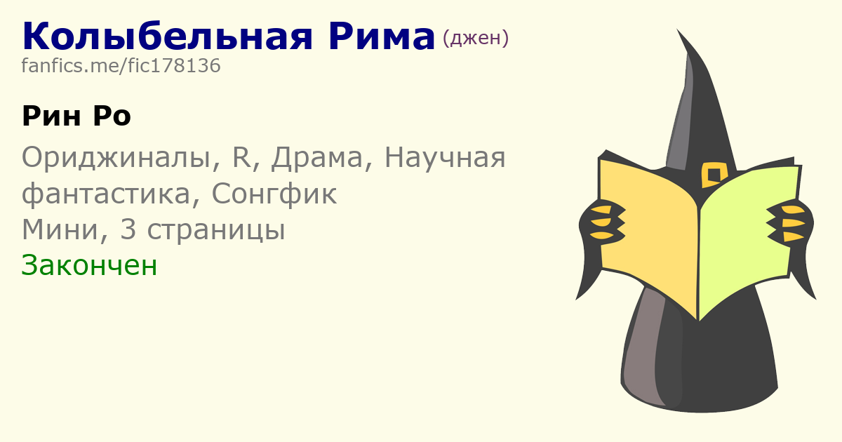 | Агнета Блоссом О, спасибо еще раз) Знаете, вы открыли все карты. Прятать от читателей больше нечего. А сонгфик... это тот случай, когда песня диктовала всё coxie Спасибо. Все хотят продолжение (даже автор) Маль Спасибо за замечания) Сумбурно - да, есть такое. Но честно в этой истории не кому сочувствовать - людей не осталось. Есть только чувство опустошенности. Рацион крыс до прихода людей... Я не знаю. Может, черви, мальки? А сохраненная проводка давайте будем считать, что ученым удалось сохранить ценой своей жизни технику) Эс-Кей Спасибо) а здесь нешуточные дебаты о рационе крыс, людей и теории самозарождения жизни. Вооружусь в следующий раз энциклопедией 3 | |